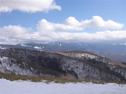 スキー場からは蓼科山が良く見える。雲が多く山頂は見えたり隠れたりだ。