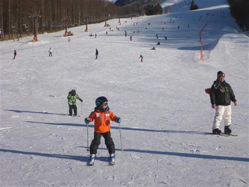 スキー場に到着。スクールは午前中がすでに一杯だったので、まずは家族で滑ることにする。