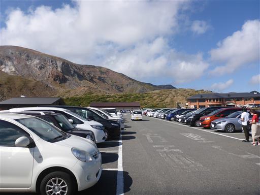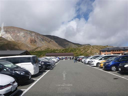 混雑する浄土平の駐車場に車を停める。標高1600m。