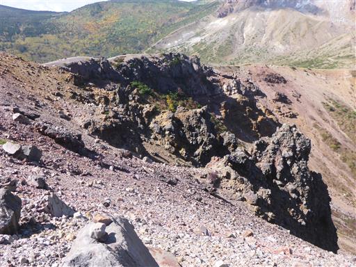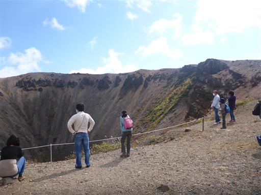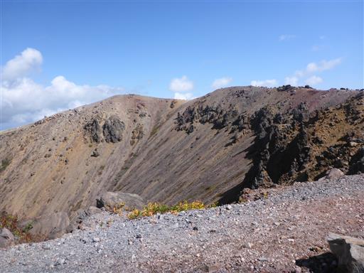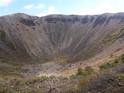 眼下に巨大な噴火口が見える。山の規模に似つかわしくない巨大な穴だ。