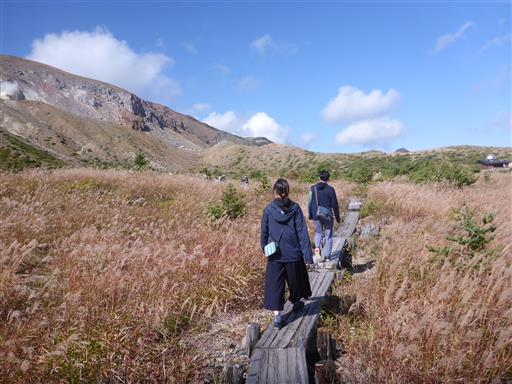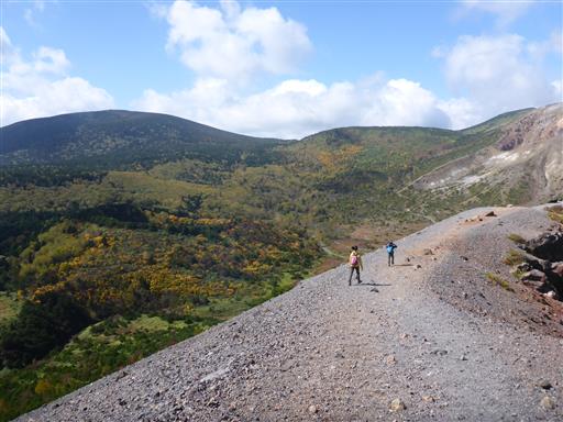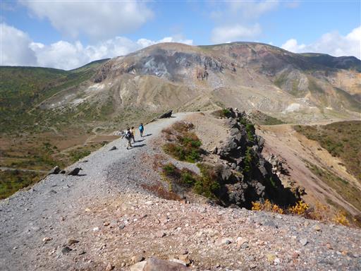 背景は今も活発な火山活動を続ける一切経山。
