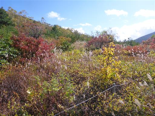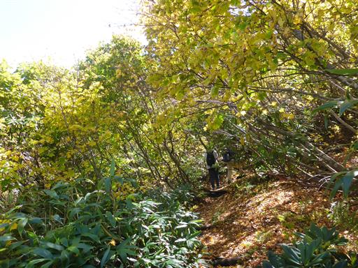 眼下の黄葉がきれいだ。左に見えるのは以前登った東吾妻山。