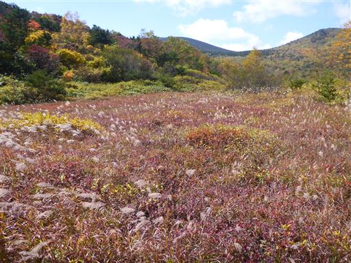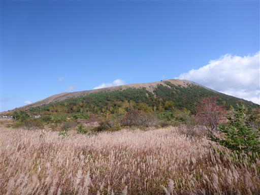 この辺りはススキが美しい。背景は先ほど登った吾妻小富士だ。