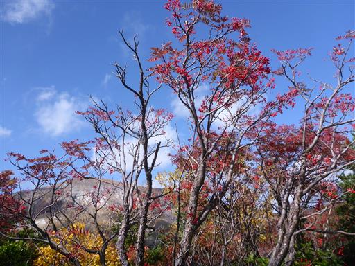 赤い実が青空によく栄える。ナナカマドだろうか?