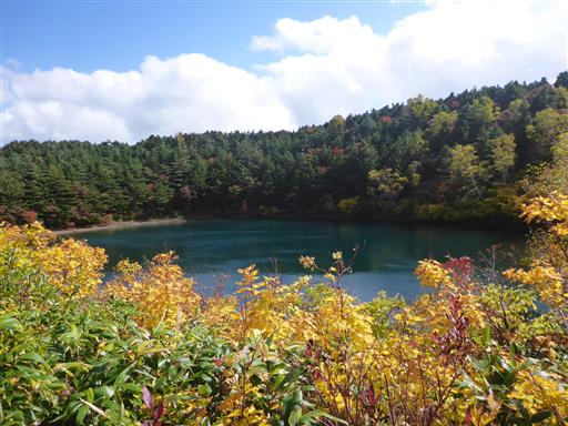 桶沼に到着。ここも噴火口跡だ。吾妻小富士とは異なり、こちらは水を湛えている。