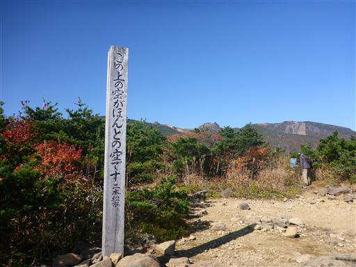 安達太良山頂の標識が立っている。