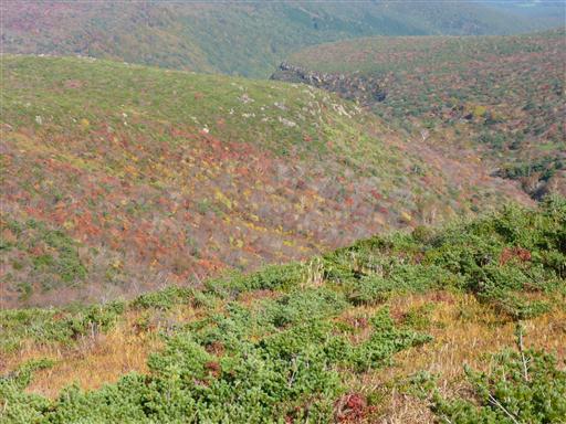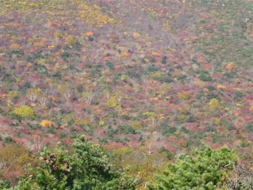 眼下の紅葉が美しい。山頂部の紅葉はもう終わりかけで、今はこの辺りが旬だ。