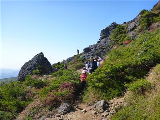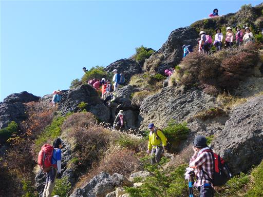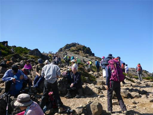 山頂部は登りと下りが別の道になっていて、下りの岩場で詰まっているようだ。