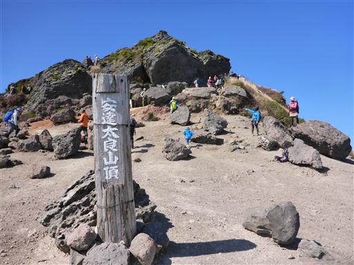 待っていても埒が明かないので、側の岩場を強引に登って山頂に達する。