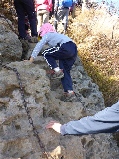 簡単な鎖場を登る。しかしその後、