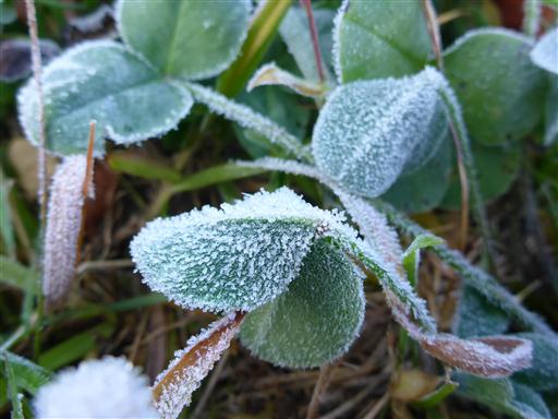 夜はかなり冷えたのか、霜が降りている。