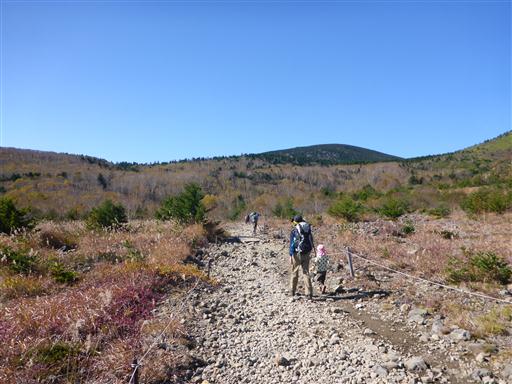 湿原遊歩道が終わり、大きな登山道と合流する。