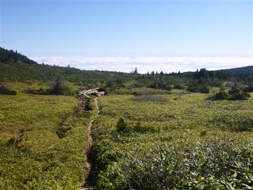 まっすぐ行くと、谷地平湿原に下ることができる。