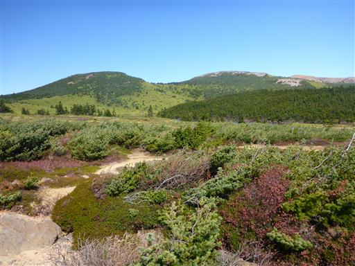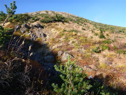 40分ほど樹林帯を登ると、森林限界を超えて突然視界が広がる