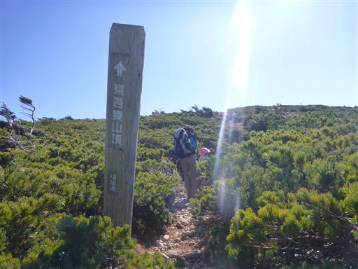 東吾妻山頂↑の標識が立っている。
