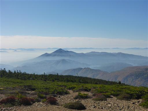 こちらは靄に浮かぶ安達太良山。