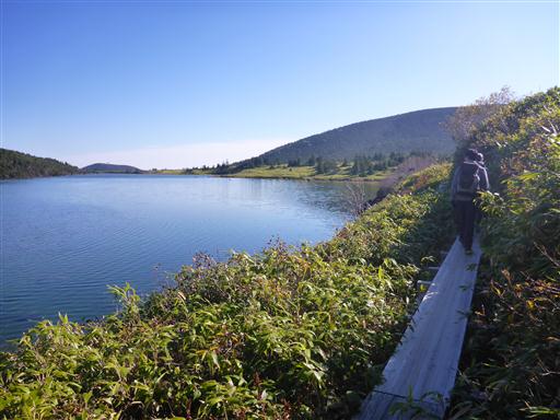 湖岸沿いにつけられた木道を歩いていく。