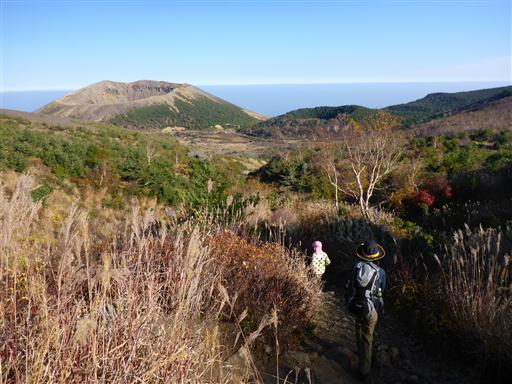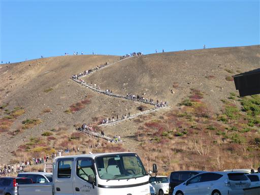 もう3時半なのだが、吾妻小富士に通じる道は数多くの観光客が列をなしている。