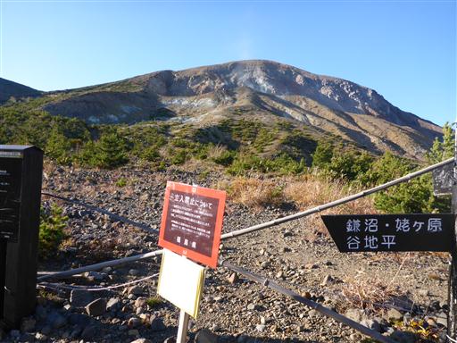 一切経山への最短コースは噴火活動の活発化により立入禁止になっている。