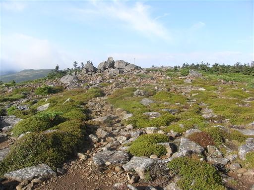登山道のあちらこちらに転がっている石は皆コケに覆われている。