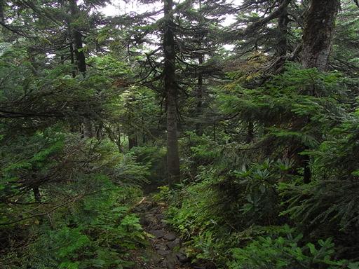 下山道は山上に広がる湿原地帯とは打って変わって、
