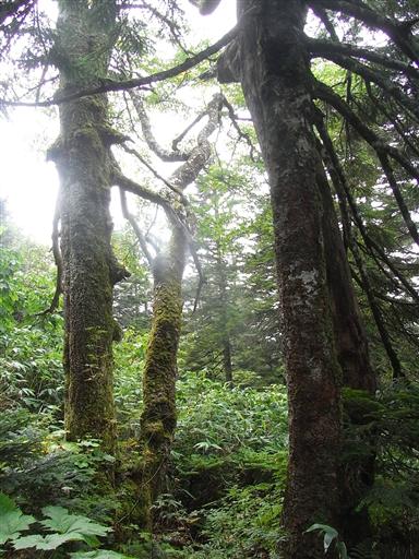 周りに広がる樹木もコケに覆われている。