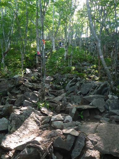 急坂には大きな石がゴロゴロしていて、それらを乗り越えて進んでいく。