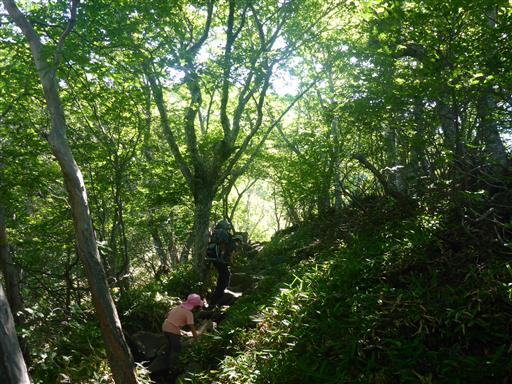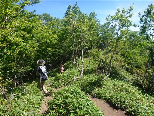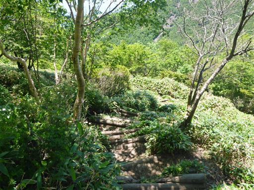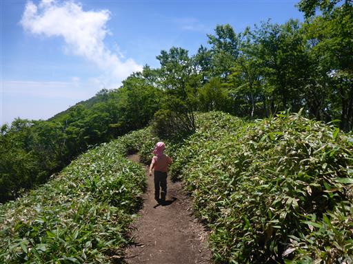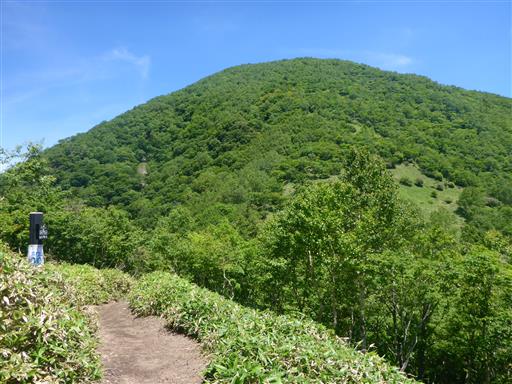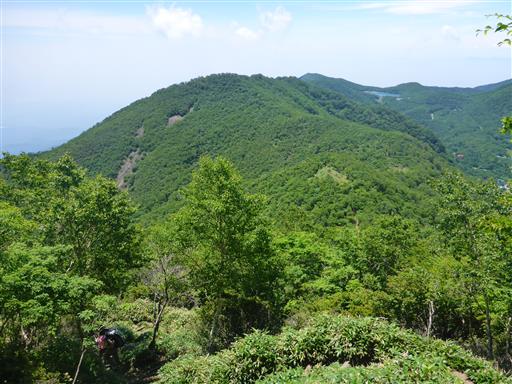 振り返ると、こんもりとした黒檜山が見える。ここから駒ヶ岳まで登り返しだ。