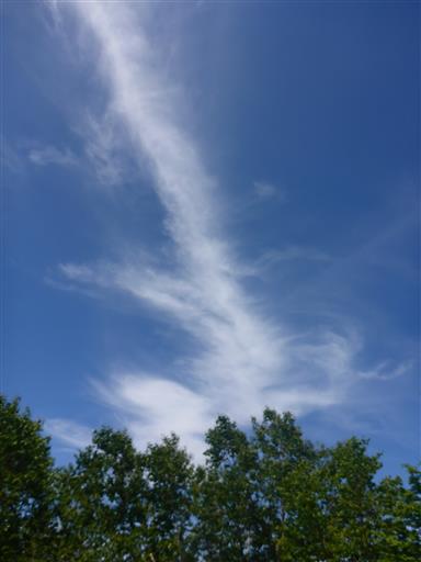 一筋の雲がきれいだ。昼食にはまだ早いため、おやつを食べたら出発する。