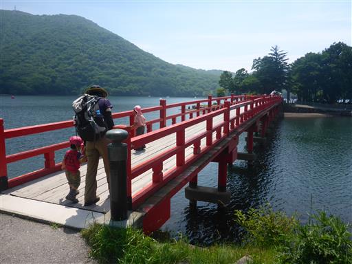 赤城神社に立ち寄る。神社に続く赤い橋を渡る。