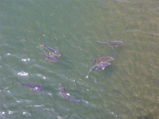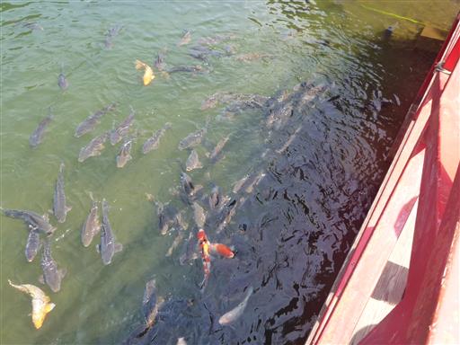 鯉の餌をあげている人がいて、大量の鯉が集まって来ている。