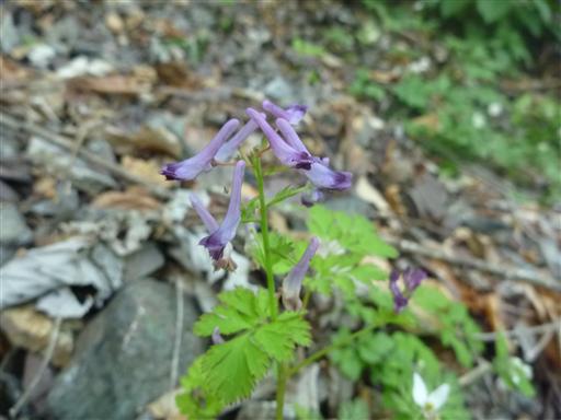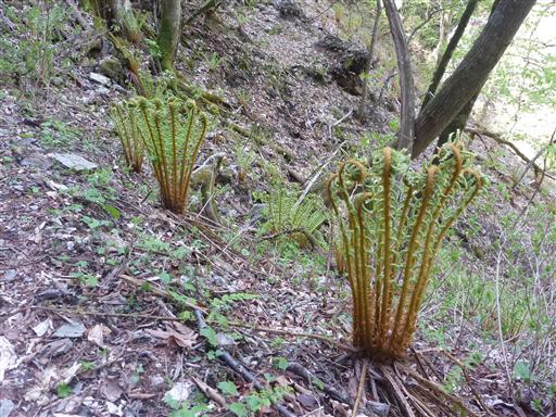 シダ植物がぽつぽつと生えている。寒いからか先っぽは丸まったままだ。