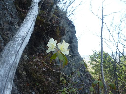 岩壁にひっそりと咲くヒカゲツツジ。アカヤシオやミツバツツジに比べると珍しい種類のツツジだ。