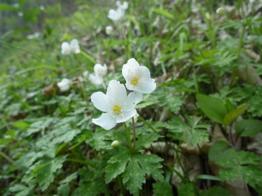 小屋付近はニリンソウの群落地だ。仲良さそうに2輪の花が並んで咲いている。