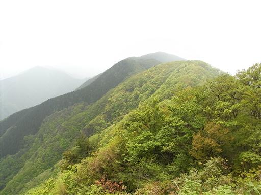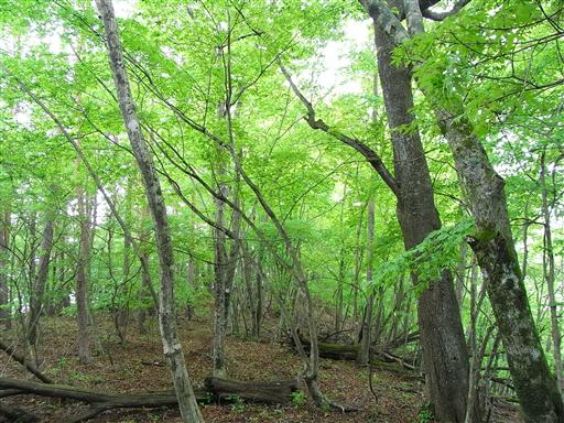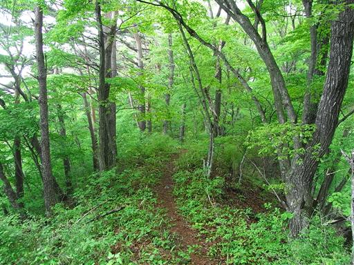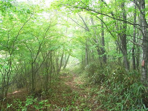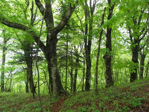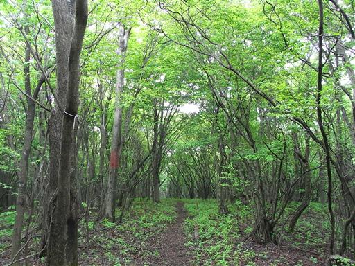 山頂付近はブナ林に覆われている。ブナ林は新緑の美しさに定評がある。