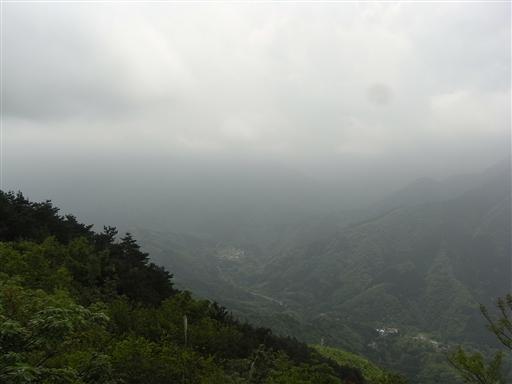 丹沢方面の山並。雲に覆われてほとんど何も見えない。