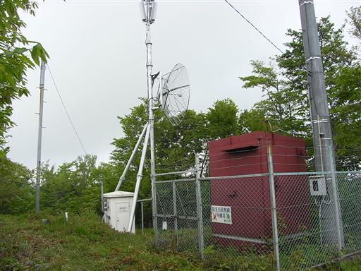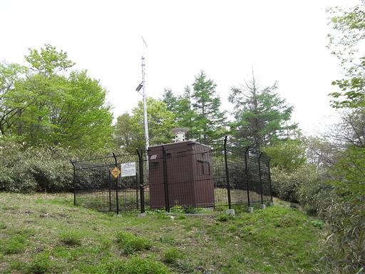 笹に覆われ、雨量観測所が建つ、何とも冴えない山頂。