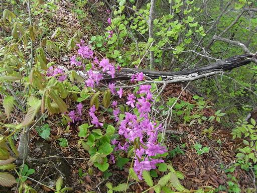 赤鞍ヶ岳までは全く見かけなかったミツバツツジが咲いている。