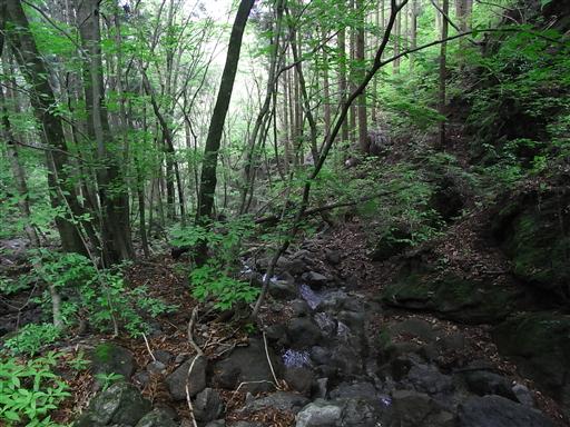 沢まで下りてくる。尾根道が荒れていたのだから、沢道も当然荒れている。