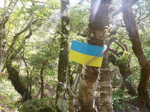 登山道を表す標識。ウクライナの国旗みたいだ。