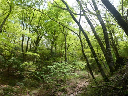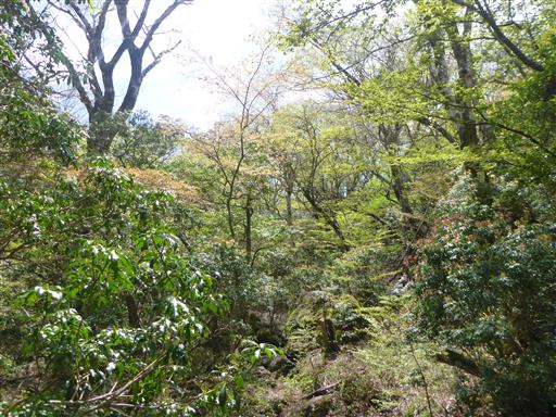 鬱蒼とした森の中に、いくらか新緑が見られる。
