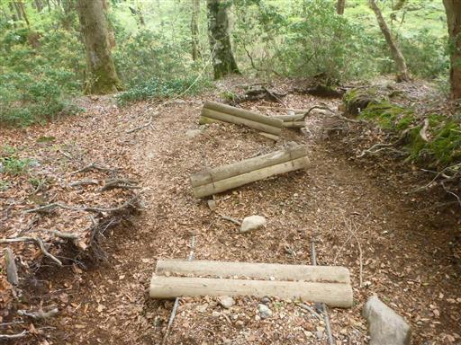 下りに使った道は荒れていて、階段が多く流されている。