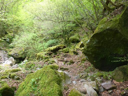 沢筋周辺は新緑が美しい。