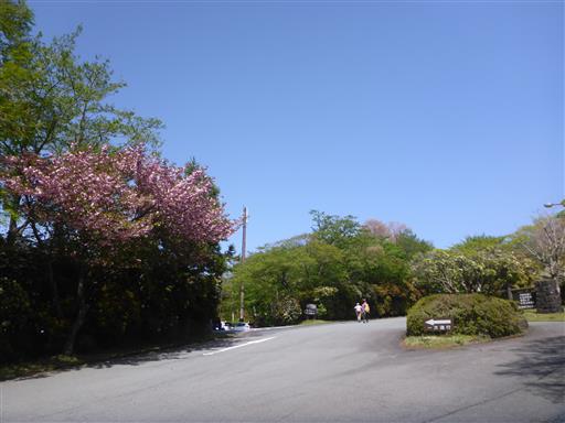 桜の花が咲いている。残念ながら山頂からは全く展望が広がらない。