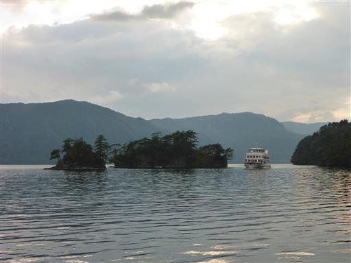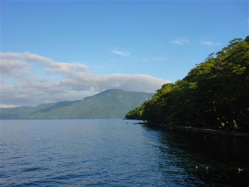 ぐるりと山に囲まれている。十和田湖は日本有数のカルデラ湖だ。