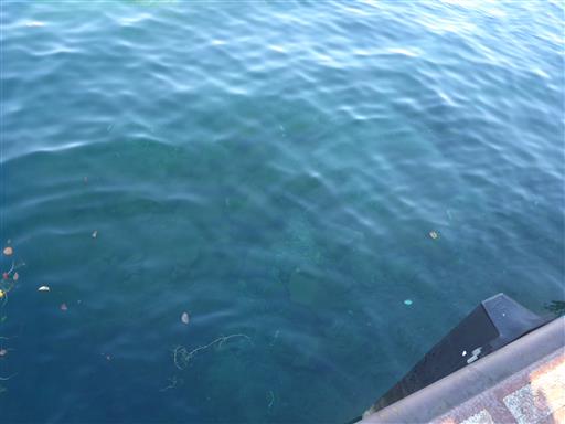 一般的に港周辺は水が汚いことが多いのに、ここでは湖底が少し見えている。