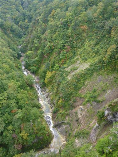 ただ、せっかくロープウェイ乗り場まで来たので、近くの城ヶ倉大橋に寄り道する。