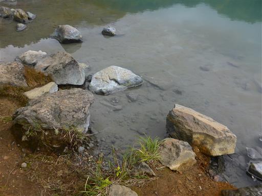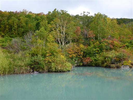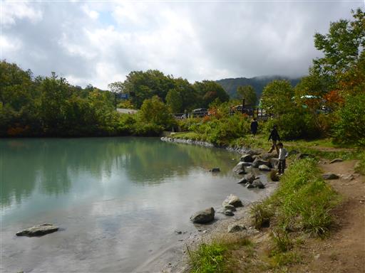 沼の畔に下りる。ここは爆裂火口跡に、湧き出る温泉がたまってできた沼らしい。