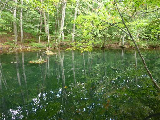 鏡沼の上流にある月沼。辺りは静寂が支配している。