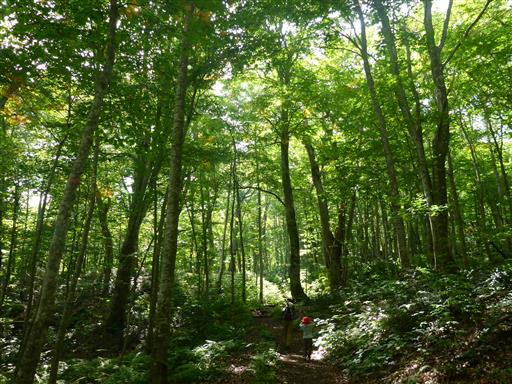 ブナやトチなどが生い茂る緑に覆われた森が広がっている。